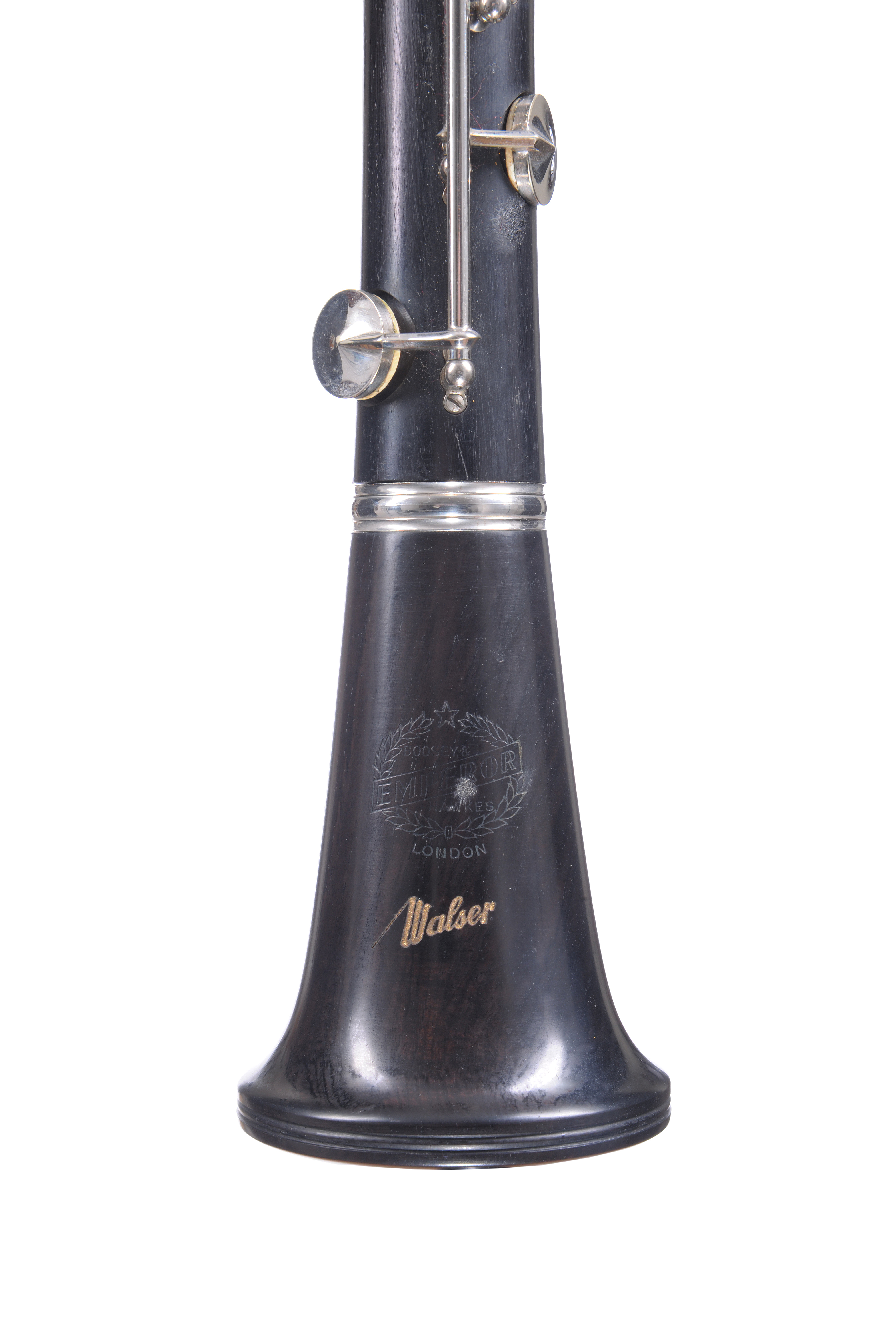 Clarinette Boosey Hawkes à Londres, modèle Emperor-Walser portant le N° N132065, en ébène et argent, plateaux creux, dans son étui d'origine, parfait état. Cet instrument est un cadeau de Sidney Bechet à son fils.