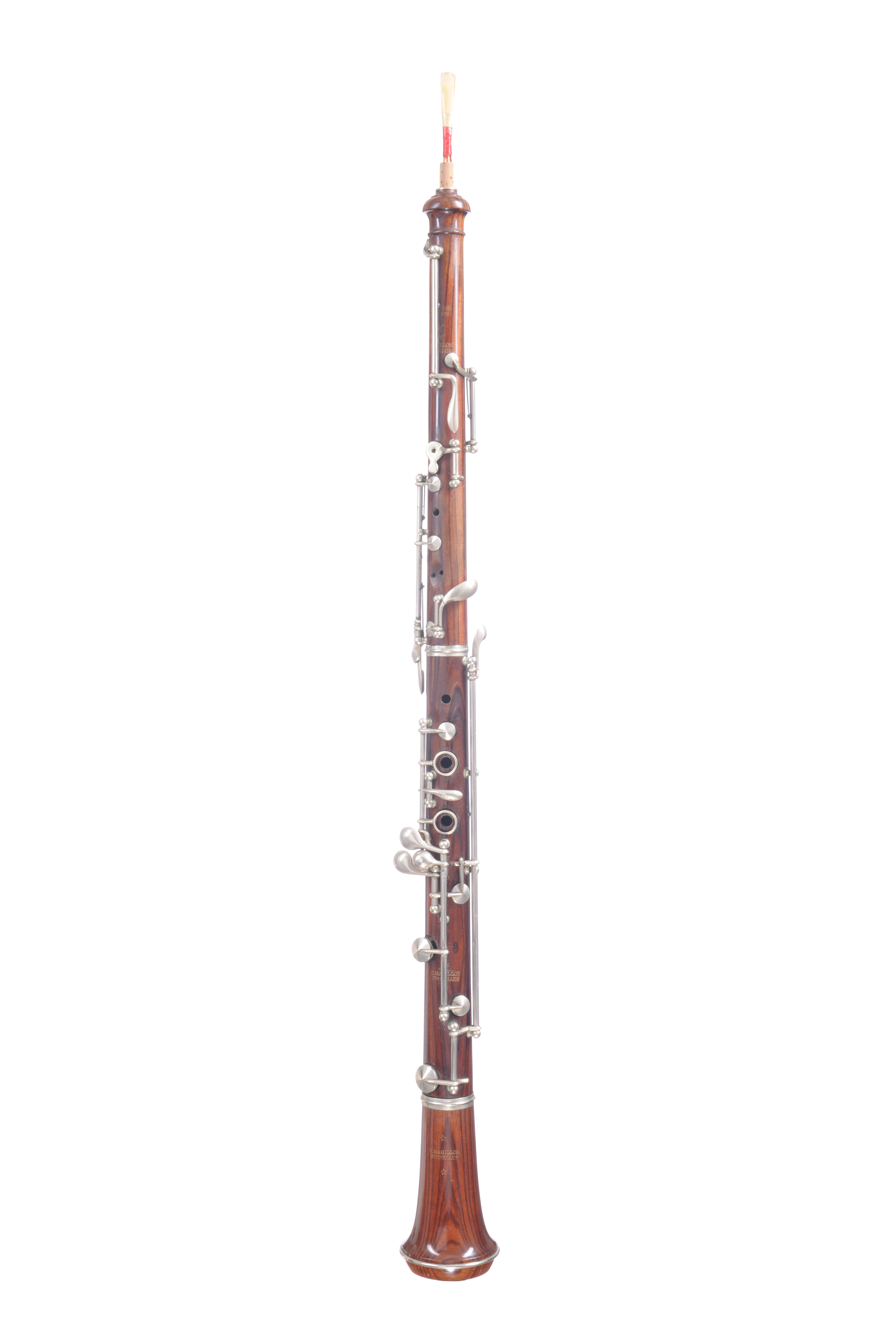 Hautbois "Mahillon à Bruxelles" en palissandre et maillechort à 11 clefs, en bon état avec boite.