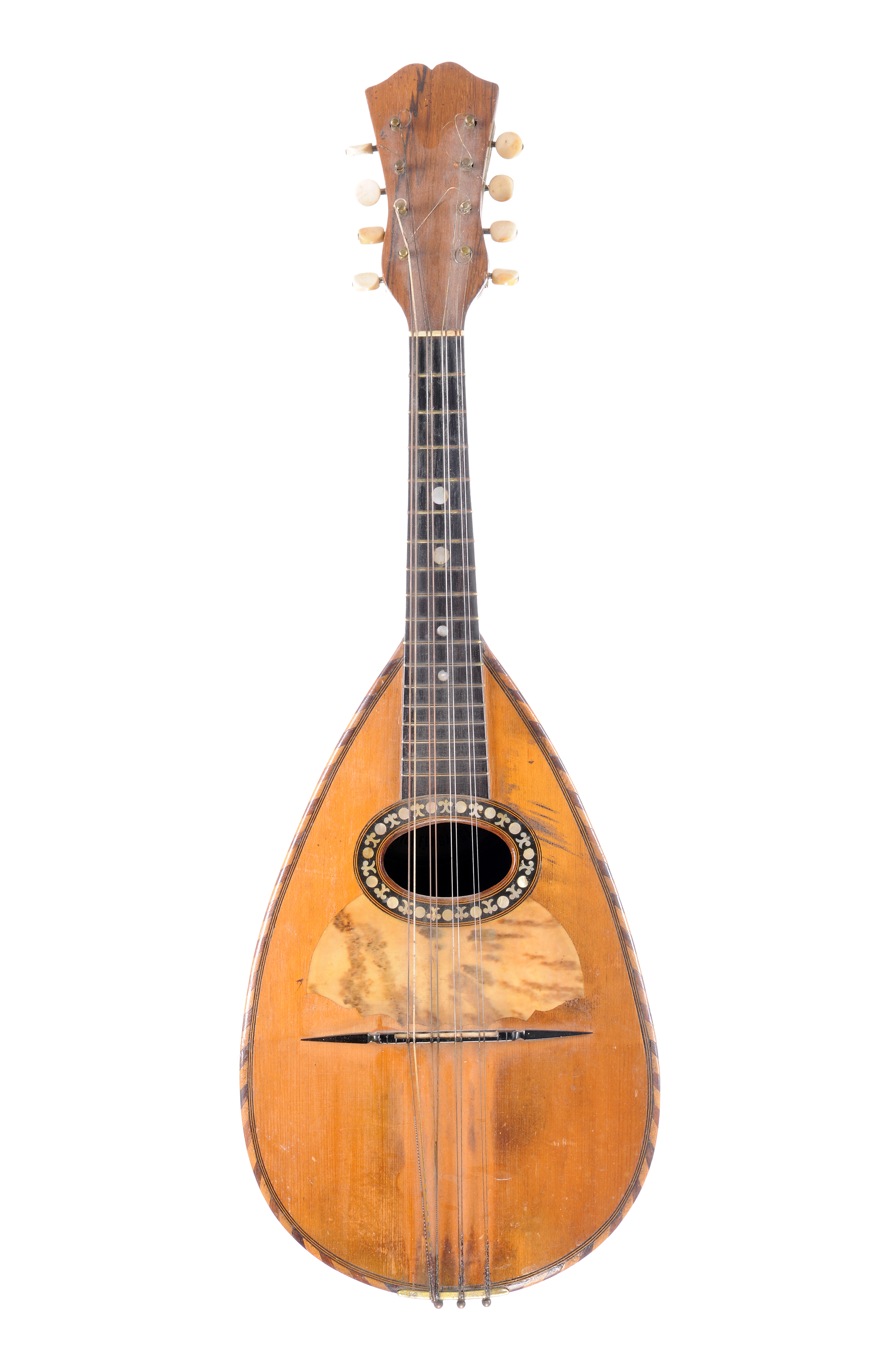 Mandoline napolitaine à fond bombé, portant une étiquette de Luigi Fenga Catania. Italie. Bon état général.