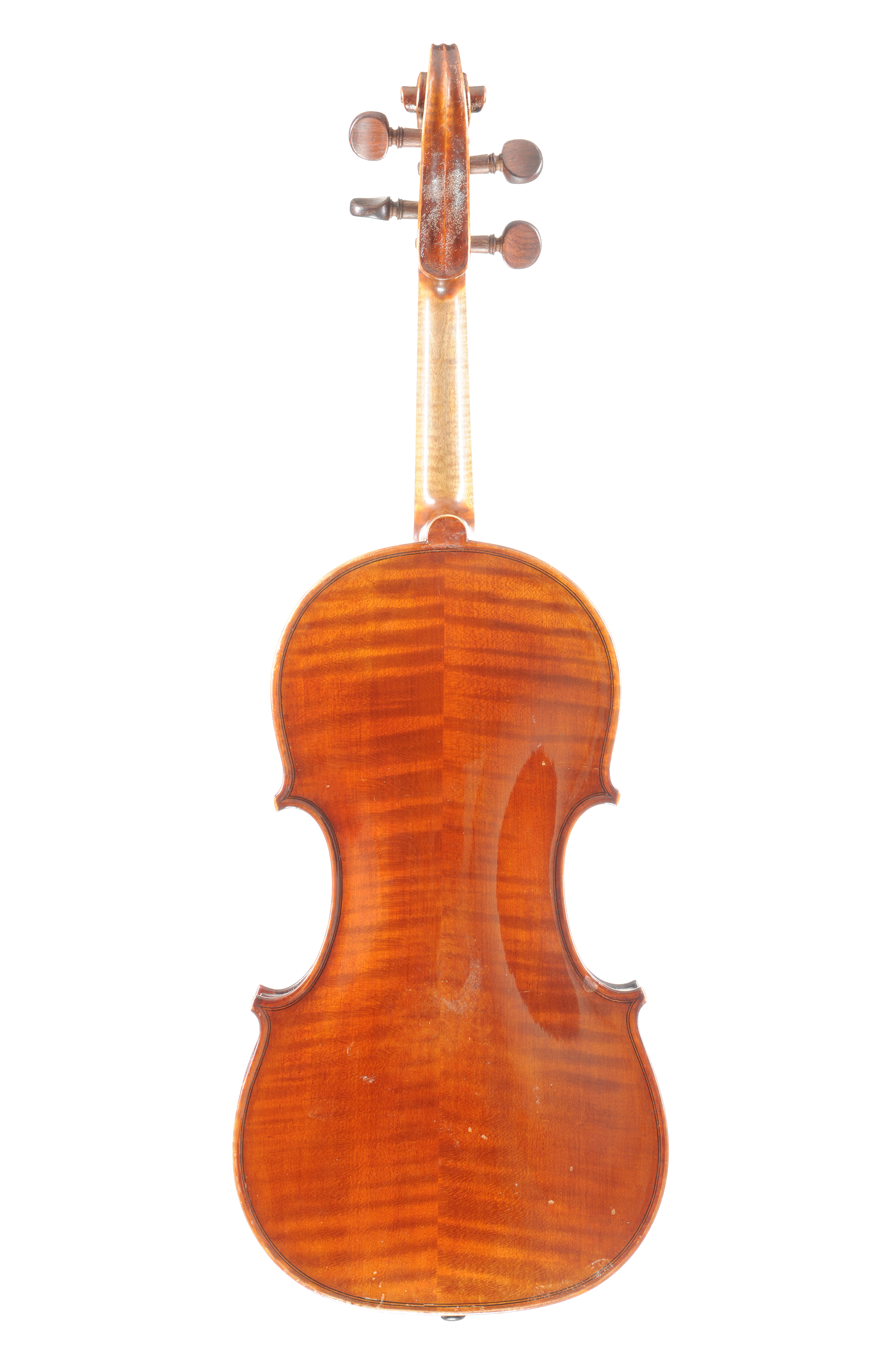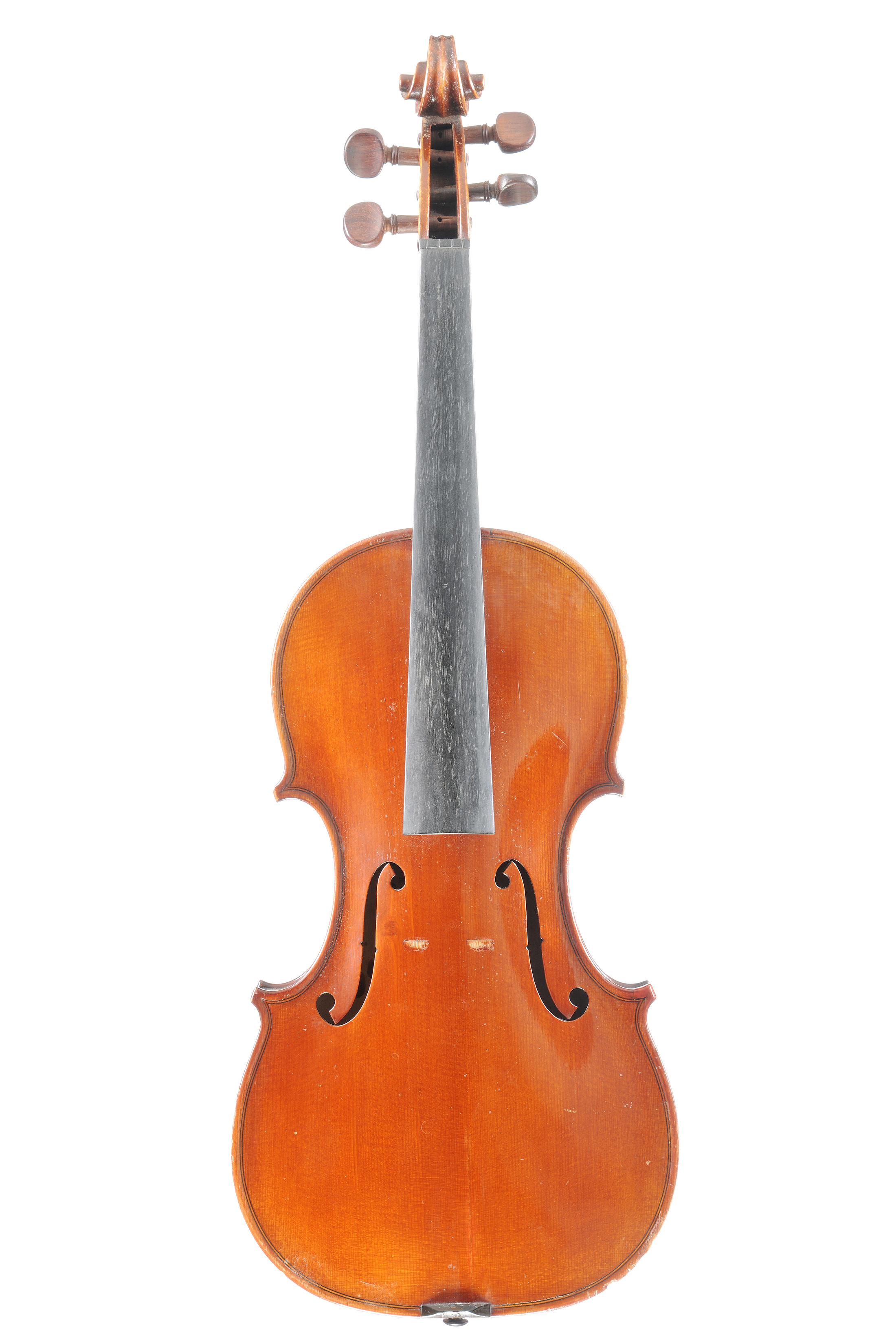 Violon Mirecourt XXe, portant une étiquette de Somny et Villaume, 1949. Fond de deux pièces, vernis brun orangé. 362 mm. Bon état général.