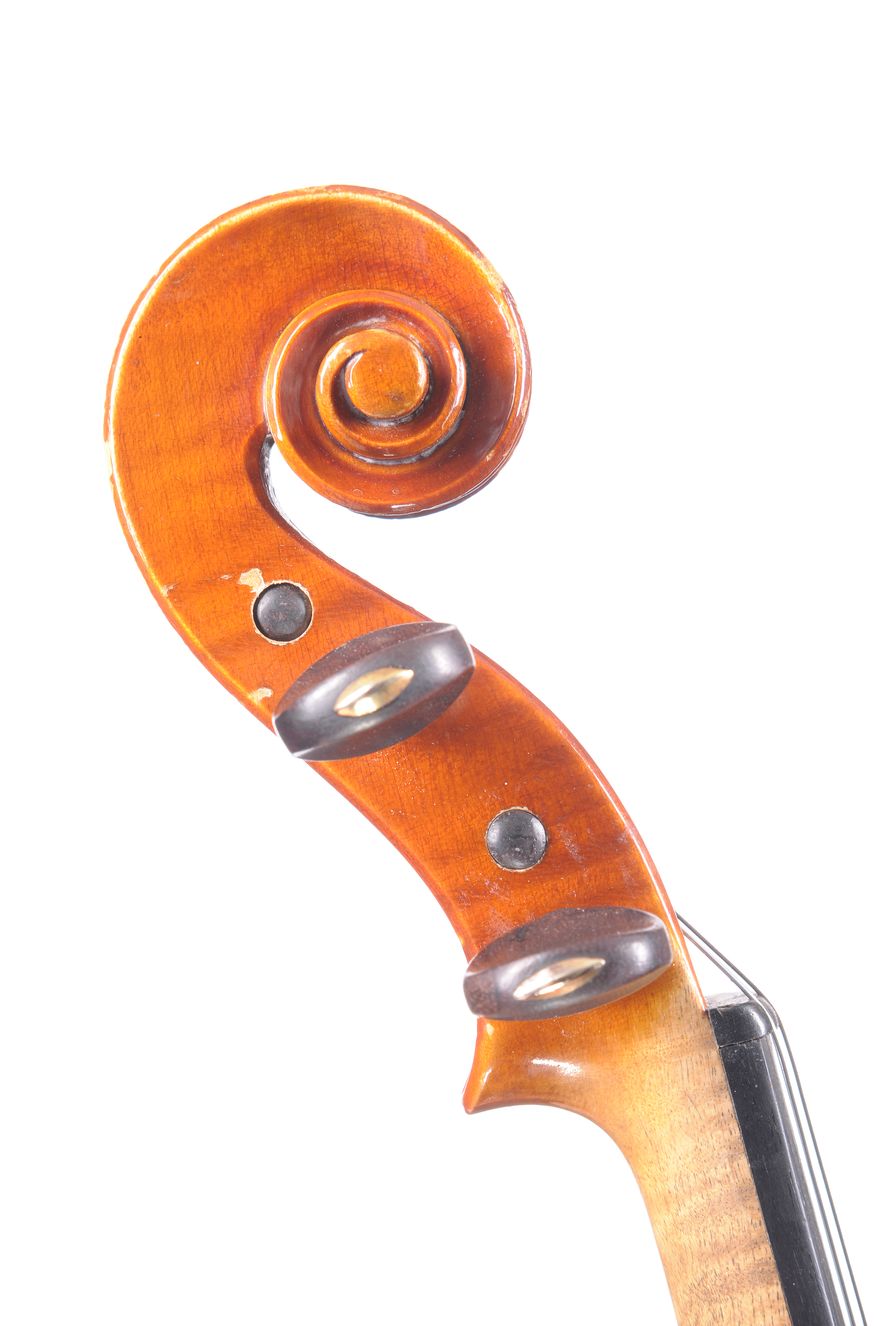 Violon de "Audinot Mourot 1920". Fond de deux pièces. Cassure à la table. Vernis brun doré. 360 mm.