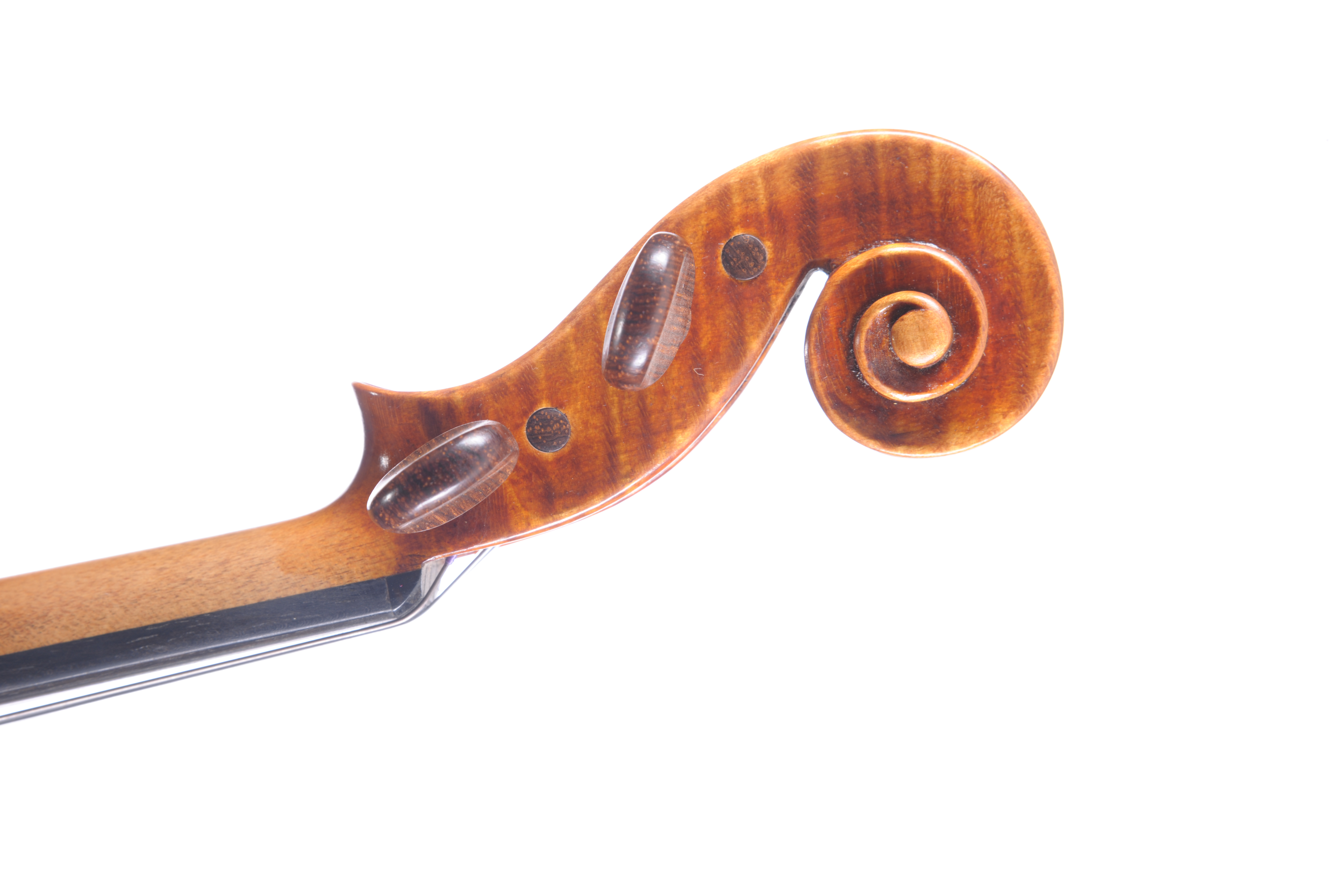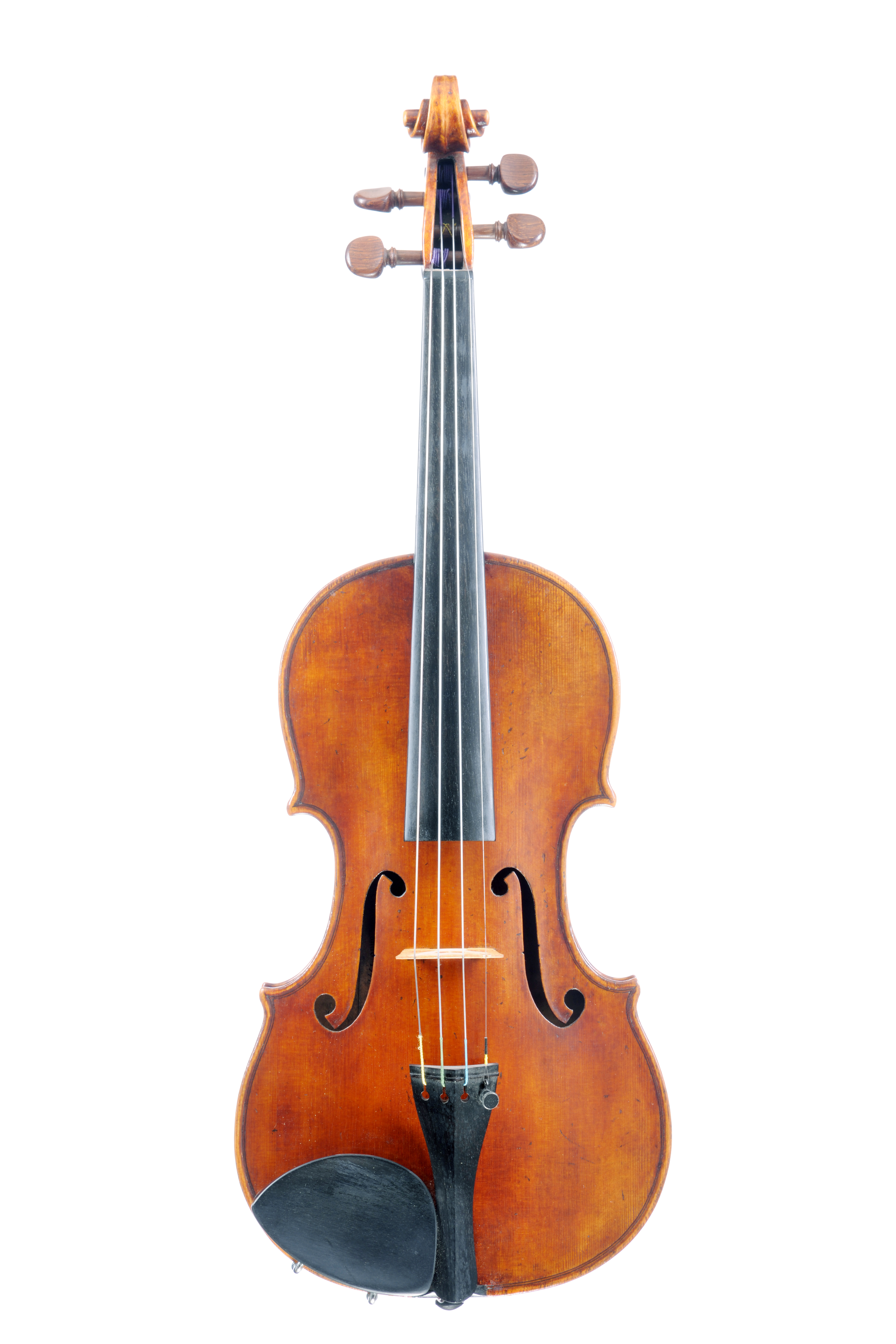 Violon fait en copie de Guarneri 1744, par Kurt Jones USA 1995; Fond de deux pièces. Ondes régulières. Vernis brun orangé sur fond doré.