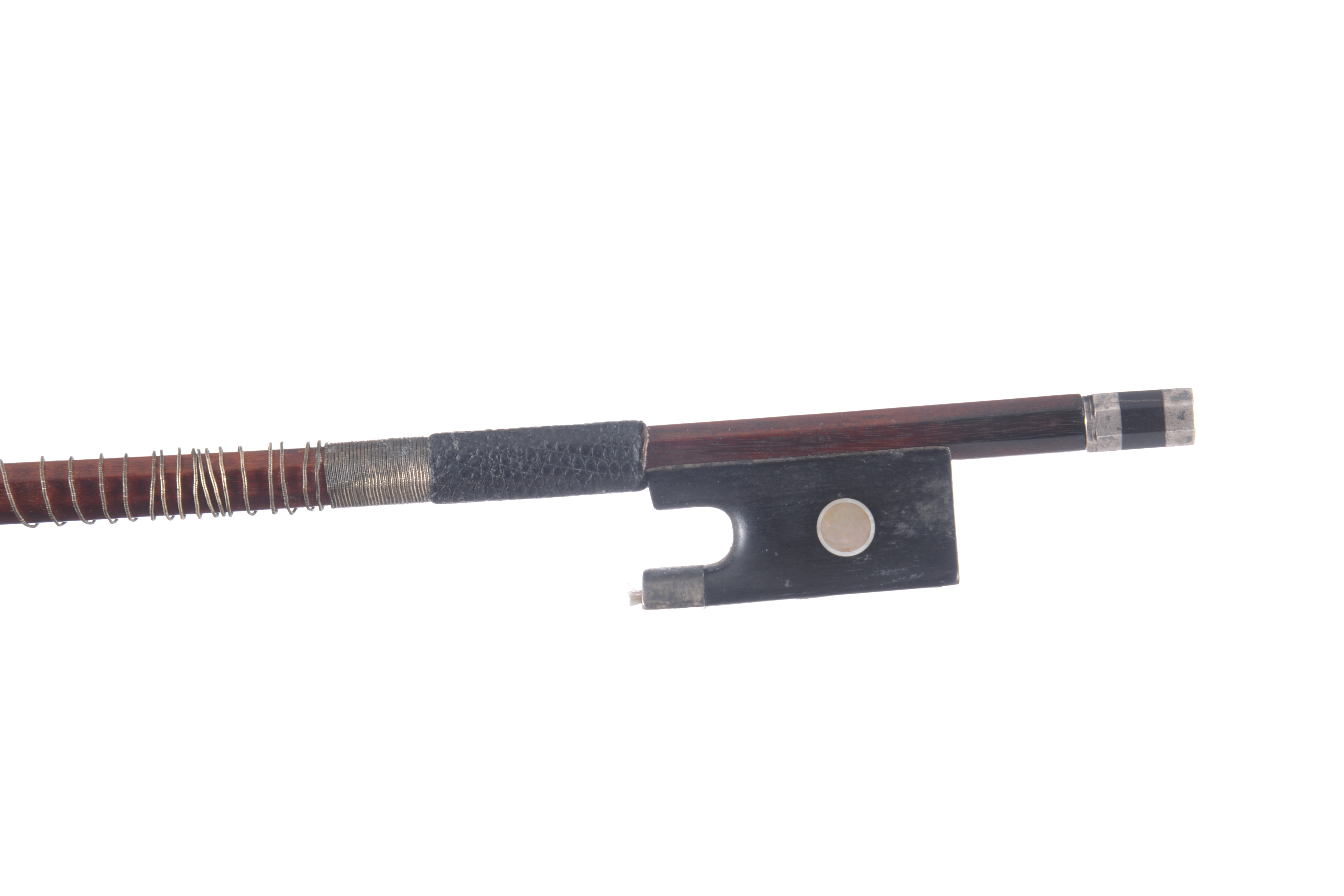 Bel archet sans marque, bois exceptionnel. Hausse ébène, montée argent. 727 mm.