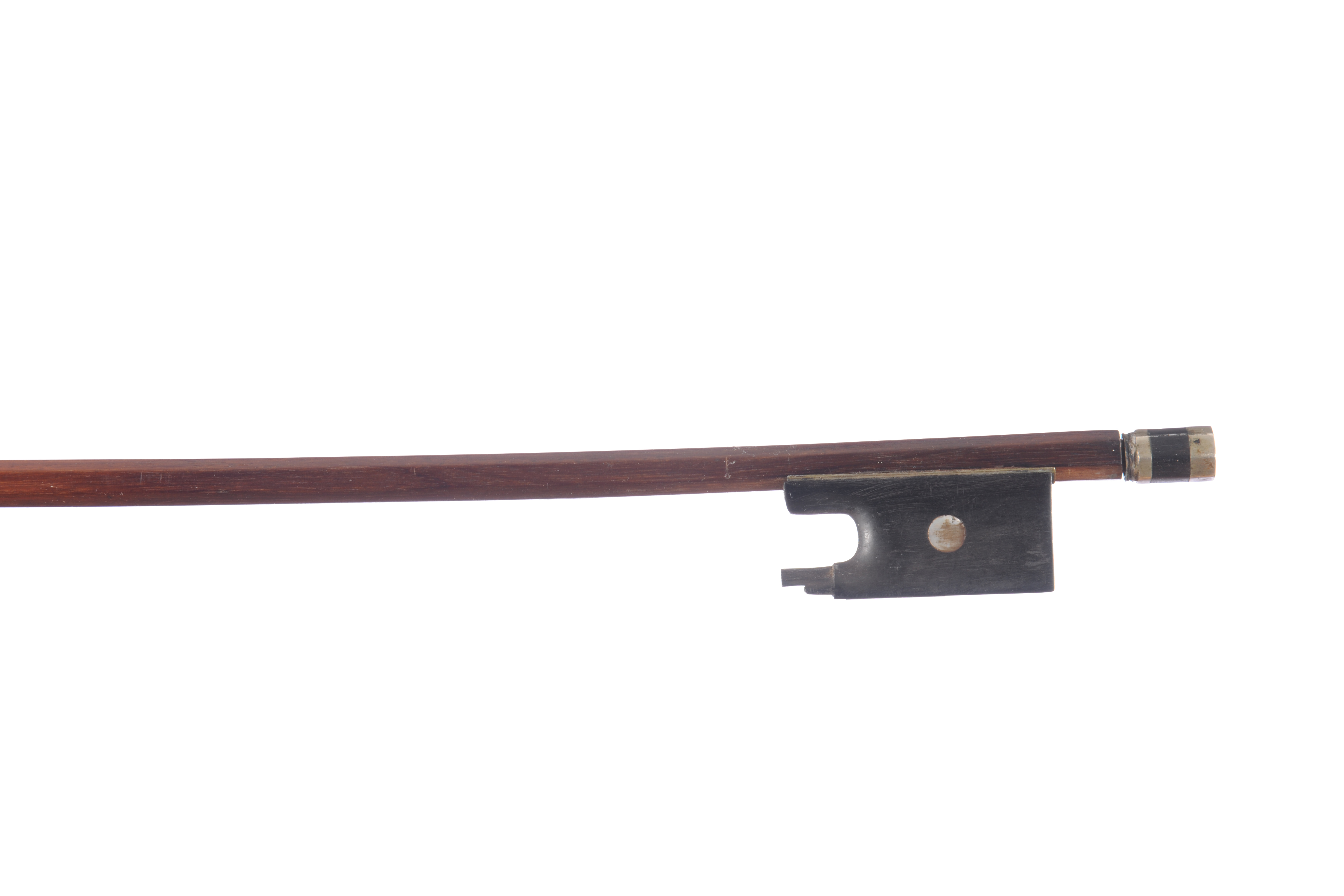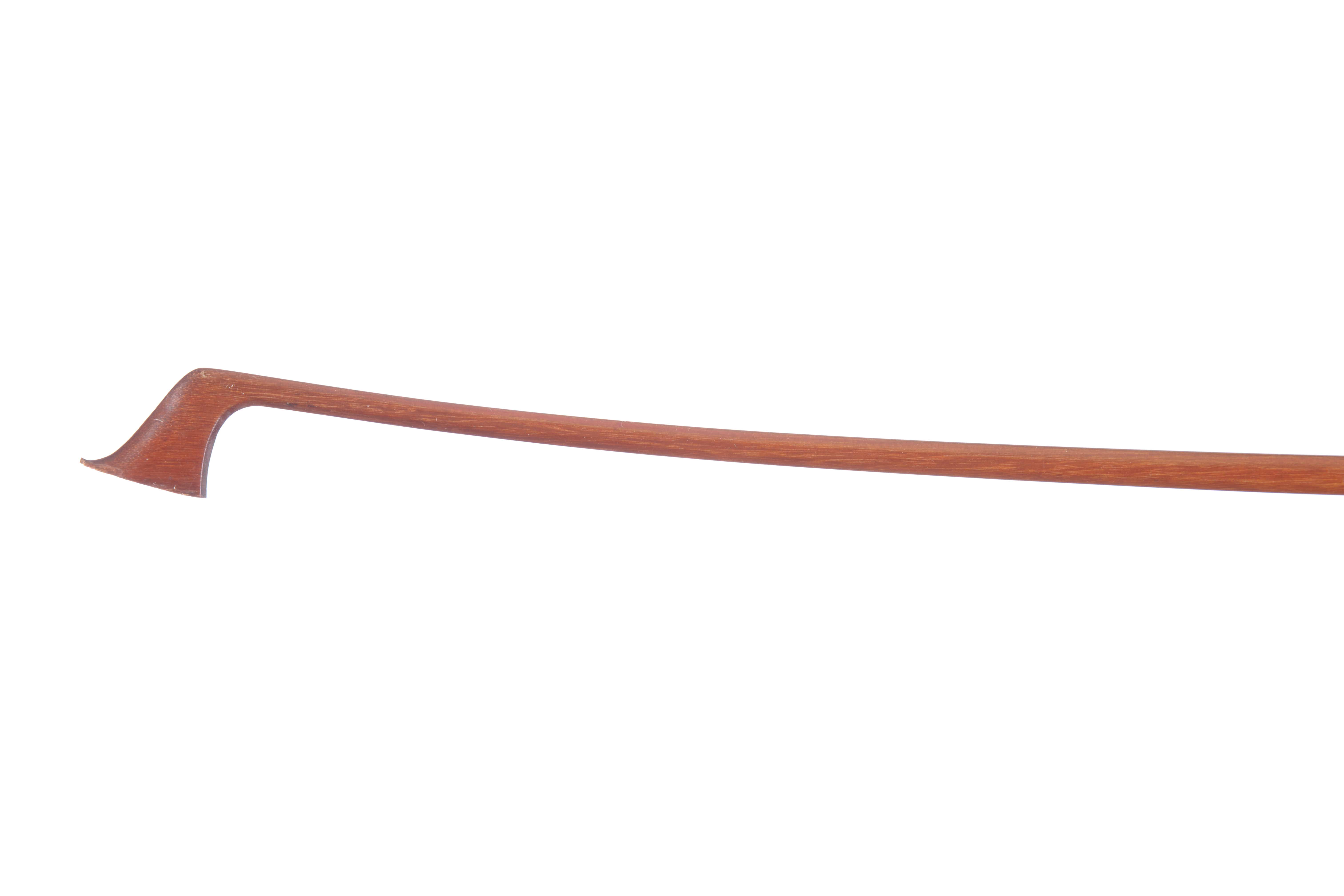 Bel archet de violon, baguette en beau pernambouc octogonale modèle en col de cygne de Lafleur Joseph. Hausse et bouton postérieurs en ébène sans passant ni talon. 725 mm, 40g sans mèche ni garniture. Avec certificat de J.F. Raffin.