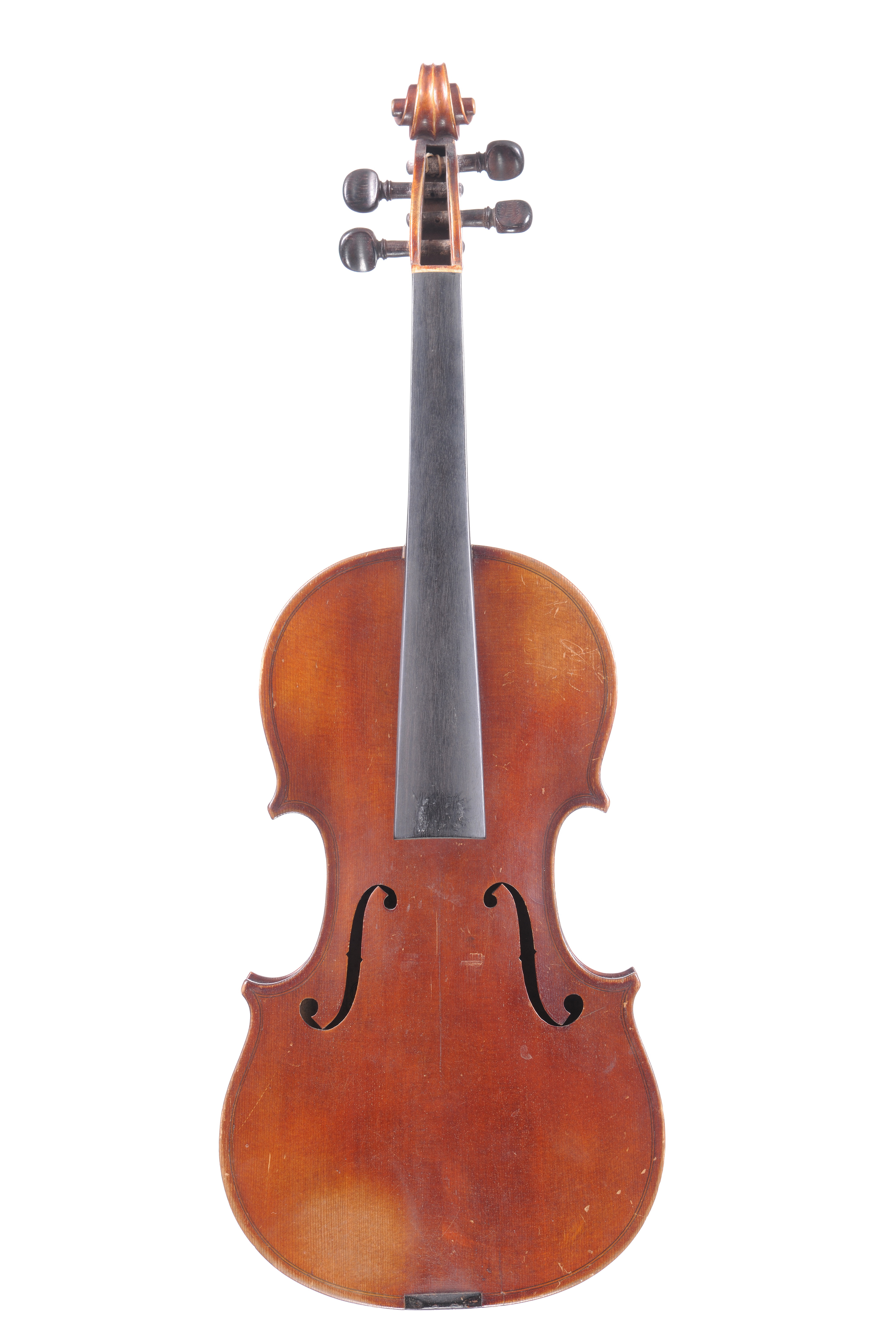 Violon Français portant une étiquette de "Jean-Baptiste Vuillaume à Paris", fait dans le style de Mermillot. Fond de deux pièces. Vernis brun rouge sur fond doré. 358 mm.