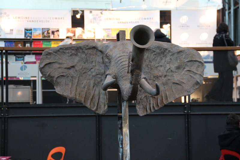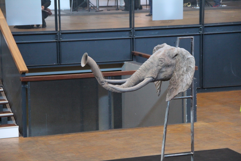 Bronze, représentant un éléphant à trompe saxophone.